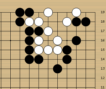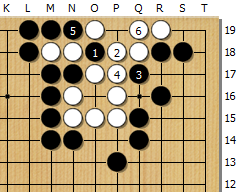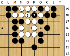 백은 6으로 응접하지만 다시 흑7의 먹여침을 당해 흑9까지 <패>가 된다.