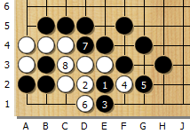 기력이 좀 되는 사람은 흑1의 맥점도 생각하겠지만, 백2 이하 8까지, 흑은 반 정도의 이득만 취한다.
