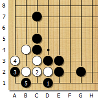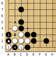 흑▲에 붙였을 때 백1이면 흑2로 나가고 백은 3으로 따내야 한다. 차후 백B면 흑A로 본격적인 <패>가 된다.