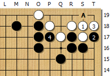 백1에 붙여서는 흑2를 당해 잡힌다. 백1로 A에 호구치면 흑2, 백3으로 <패>가 된다.
