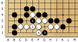 흑1로 먼저 따내는 것은 악수다. 백2와 교환하고 흑3에 치중하면 백4로 맛좋게 산다. 이처럼 수순의 효과란 무서운 것이다.