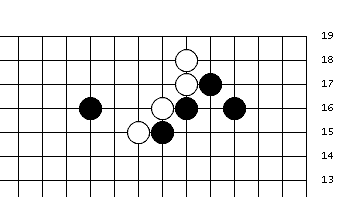 흑1로 끊고 3으로 잇는 수가 봉쇄 준비의 공작. 백4의 단수에 흑5의 되단수가 봉쇄의 맥이다. 백8로 A에 끊는 것은 흑이 <패>를 따내고 난 다음 백12에 이으면 흑9로 뻗는 모양이 되어 백의 무리다. 백8에서 10까지 될 수밖에 없다.