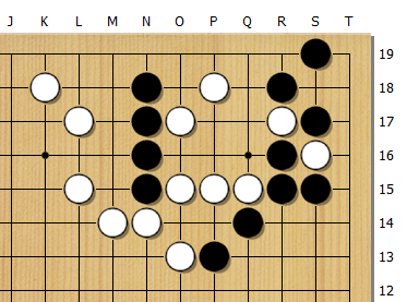 수근대사전 제124 문제도(백선) 상변 백 넉점을 에워싸고 있는 흑의 약점을 찾아보자. 정해도 백1로 찝은 다음 백3의 치중이 교묘한 수순이다. 계속해서..... 정해도 계속 백△의 치중에 흑4로 막으면 백5, 흑6해도 안된다. 흑4로 7에 두어도 백4로 넘어간다. 변화도 백5에 흑6으로 이었을 때의 변화를 보자. 흑8로 끊어 상변 백을 공격해보지만 백11로 두점으로 키워버리는 수가 좋은 수여서 백15까지 흑의 수부족이다. 맥(手筋)공부/手筋大事典 2021.12.24