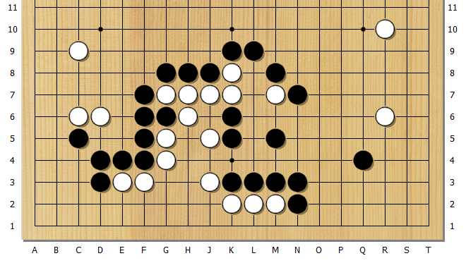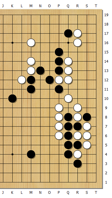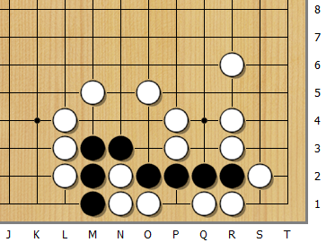수근사전 제116형 문제도(흑선) B급 하변 백이 땅이 넓어 살아있는 것 같지만 그렇지 않다. 흑의 교묘한 공격에 적어도 절반은 먹을 수 있다. 정해도 흑1로 건너붙이는 수가 맥. 백은 2로 응수하는 수가 좋으며, 흑3, 백4는 절대. 계속해서..... 정해도 계속 흑5의 절단부터 백10까지 흑은 백의 절반 정도를 잡을 수 있다. 수순 중 의 백2로 3에 잇는 것은 흑5에 끊겨 전부 몰살한다. 맥(手筋)공부/手筋辭典 2021.03.18