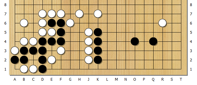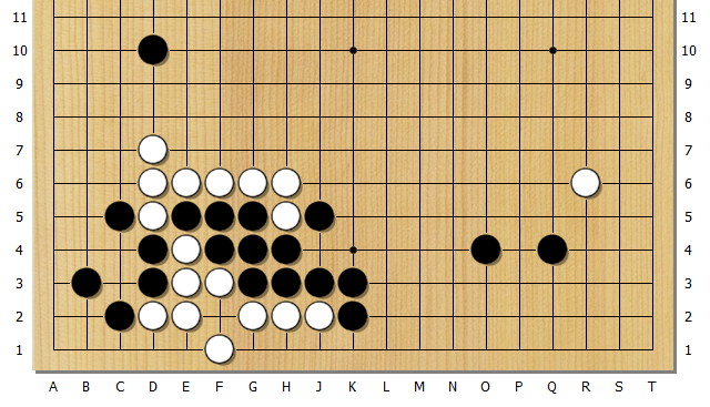 문제13 문제도(흑선) 돌을 버리고 활용하는 것은 상용의 수법이다. 정해도(흑선활) 흑1로 내려서서 수수를 늘리는 것이 묘수, 그 사석을 이용하여 삶을 도모하는 것이 실전의 맥이다. 橋本宇太郞/五十三次 2024.01.06