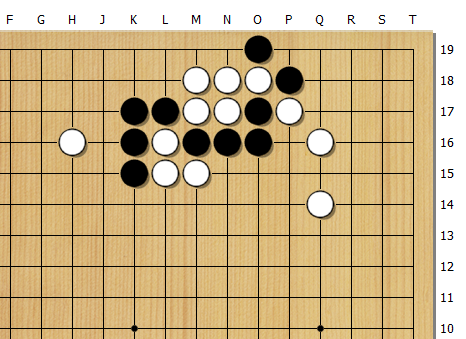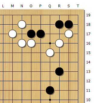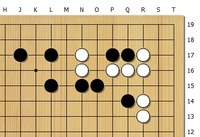 문제도(흑선) 아래쪽 흑 여섯점은 자체적으로는 살기 힘들지만, 백 또한 귀에서 살 여지가 없다. 흑은 더 나은 삶의 수단을 고려해 보자. 정해도 흑1의 젖힘은 필연. 흑1로 3은 백1로 두어 흑이 안된다. 백2로 젖히면 흑3으로 이어야 하는데, 백4가 교묘하다. 계속해서..... 정해도 계속 흑5의 치중수가 요점이다. 이하 흑11로 젖히기까지 백도 두이 없지만, 백12로 먹여쳐 이 된다. 변화도 흑1로 젖혔을 때 만일 백2로 두면, 흑3으로 되모는 것이 묘수. 백4로 움직이면 흑5로 두어 흑이 한수 빠르다.