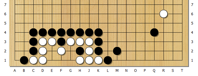 36문 문제도(흑선) 공배가 막혀있고 흑은 맛이 안좋은 모양인데, 맥의 위력으로 살 수 있다. 정해도 흑1이 급소이다. 백2는 절대이며 흑3으로 1집을 확보. 백4로 잡는 것처럼 보이지만, 흑5로 키워 잡히는 것이 좋은 수. 계속해서..... 정해도 계속 흑7로 되잡는데, 소위 가 된다. 실패도 흑1, 3으로 백2점을 잡는 것은 백4의 가 좋은 수여서 흑이 잡힌다. 사활공부/吳清源의詰碁道場 2023.08.29